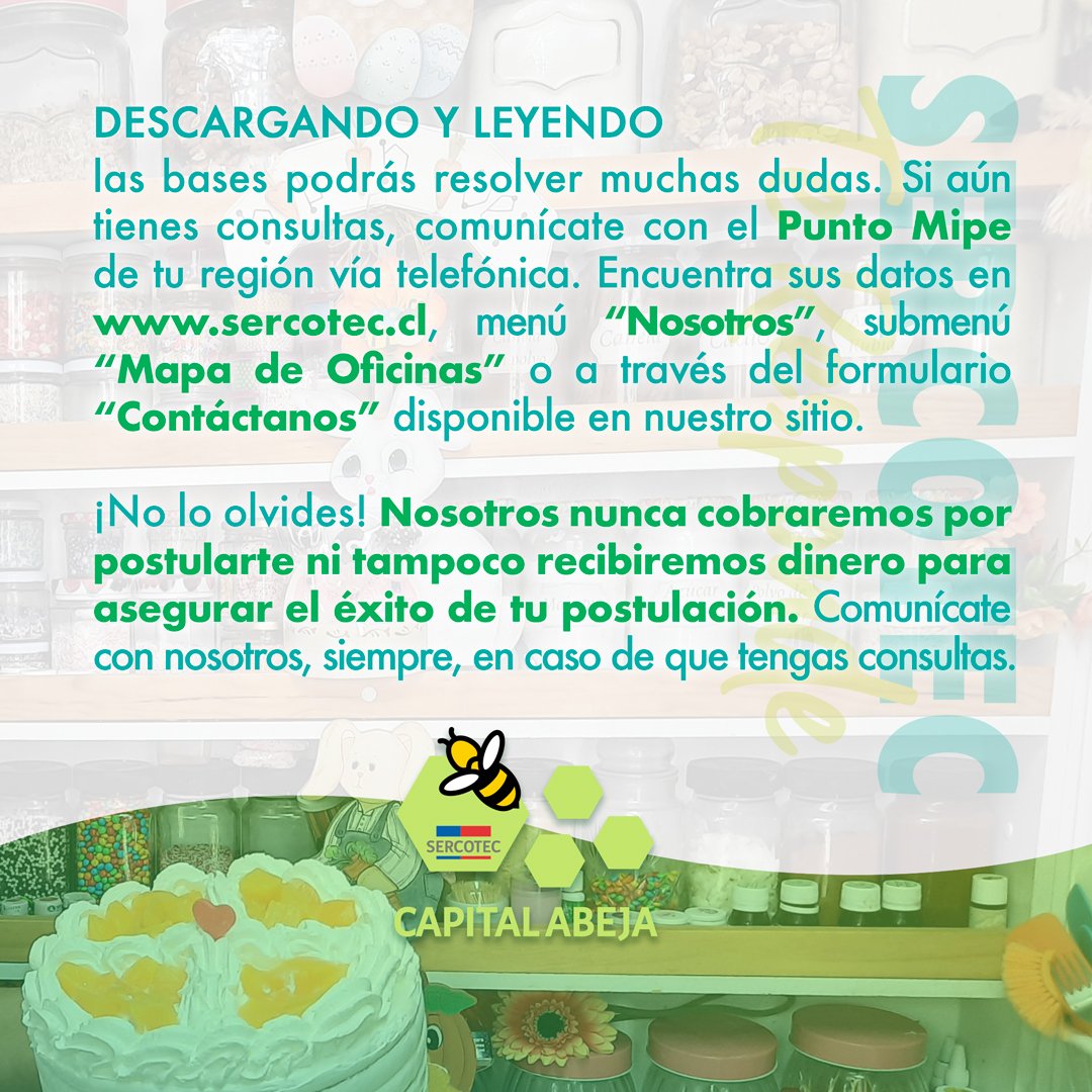 No podrán postular personas que tengan contrato vigente con sercotec o con el agente operador, familiares de miembros del comité de desarrollo productivo. Cómo postular a sercotec 2021 semilla emprende sercotec modelo canvas sercotec parte 3. Adulto mejor abeja, que permitirá incorporar a cualquier mujer de 55 años o más que tenga una idea de negocios. También puedes ver mi cuenta personal de instagram en que t doy tips diarios sobre el capital semilla, abeja, y también cosas relevantes de marketing y emprendimiento. A través de este fondo, podrán acceder a financiamiento, asesoría y capacitación para dar forma a tu idea de negocio.