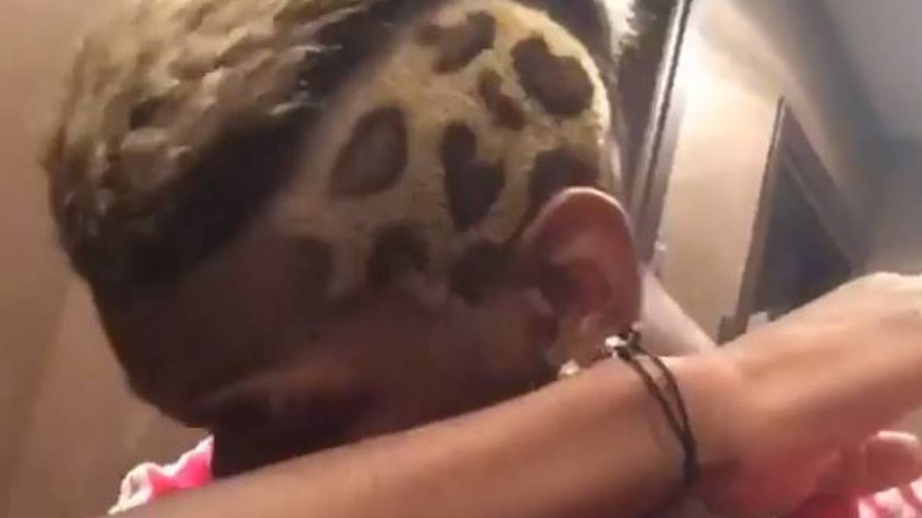 Auch schon mit leopardenmuster auf dem kopf auf.
